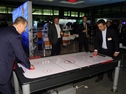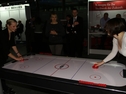 Air Hockey ist ein Reaktions- und Geschicklichkeitsspiel. In den USA und einigen anderen Ländern existieren Sport-Wettbewerbe mit Meisterschaften im Air Hockey. Gespielt wird auf einem Airhockeytisch. Eine ebene, glatte Platte dient als Airhockey-Spielfeld. Durch viele kleine Löcher wird Luft geblasen, wodurch unter dem Puck ein Luftkissen entsteht, auf dem der Puck praktisch ohne Reibungsverluste sehr schnell gleitet. Jeder Spieler hat einen speziellen Airhockey-Schläger (Pusher), der einem kleinen, etwa handtellergroßen Plastiksombrero ähnelt. Er schützt die Finger des Spielers und erlaubt durch seine hart-elastische Außenseite eine hohe Beschleunigung des Pucks. Sowohl deshalb, als auch durch die hart-elastischen Außenbanden beim Airhockey-Tisch erreicht der Puck eine extrem hohe Spielgeschwindigkeit.