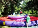 Abenteuerparcour mit 3 Spielflächen: Kletterteil, Rutsche, Hüpfkissen. Abenteuerhüpfburg Wal Free Willy.