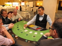 Casinomöbelvermietung. Black Jack Tisch incl. professioneller Croupier für Firmenevents, Rahmenprogramme, Weihnachtsfeier, Teambuilding, Messeparties. Am Black Jack Tisch kommt es auf Köpfchen und gute Karten an. Doch keine Angst, Haus und Hof können Sie bei uns garantiert nicht verspielen … Black Jack ist eines der beliebtesten und meist gespielten Kartenspiele. Bekannt ist es im deutschsprachigen Raum als 17 und 4. Beim Black Jack spielt der Gast, wie beim Roulette, gegen die Bank. Wenn möglich sollte seine Punktzahl also höher als die des Croupiers sein. Die ideale Punktzahl ist 21. Liegt der Spieler über dieser Punktzahl, hat er verloren. Asse zählen nach Wunsch 1 oder 11, Bilder 10, die anderen Karten zählen den aufgedruckten Wert. Es wird nicht um/mit Bargeld gespielt!