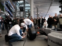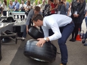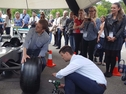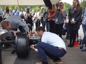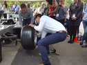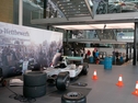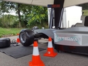 Der Bodenbereich der direkten Aktionsfläche am Vorderrad des Simulators (ca. 2 x 2m) muss rutschfest und schlagfest sein, da es vorkommen kann, daß Teilnehmer eine Mutter oder einen Schlagschrauber fallen lassen. Der Kompressor lädt zu Beginn der Aktion auf und nur dann wieder, wenn der Kesseldruck absinkt. Der Schlagschrauberantrieb erfolgt also durch Pressluft (surrendes Geräusch beim Starten der Schrauber). Die Lautstärke beim Radwechsel ist, der beim Radwechsel in einer Werkstatt vergleichbar.