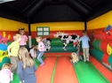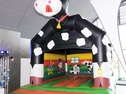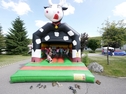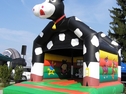 Country-Riesenhüpfburg mit Innenbemalung im lustigen Kuhstalldesign. Der Aufbau/Betrieb ist auf jeder sauberen, ebenen, tragfähigen Grundfläche möglich, nicht jedoch am Hang, auf Schotter, auf scharfkantigen oder spitzen Steinen.