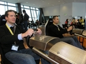 Doppel-Fahrsimulator, kompakt designed für Aktionsstände, bei denen es auf jeden Quadratmeter ankommt. Der Recaro-Fahrersitz ist auf einem Schienensystem jederzeit mühelos verstellbar. So sind die Pedalwege für den Fahrer in der Länge anpassbar. Über Force-Feedback werden die Fahrzeugbewegungen auf der Rennstrecke direkt auf den Fahrer übertragen.