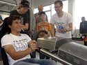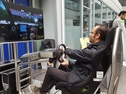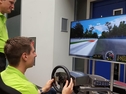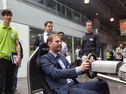 Fahrsimulator, kompakt designed für Aktionsstände, bei denen es auf jeden Quadratmeter ankommt. Der Recaro-Fahrersitz ist auf einem Schienensystem jederzeit mühelos verstellbar. So sind die Pedalwege für den Fahrer in der Länge anpassbar. Über Force-Feedback werden die Fahrzeugbewegungen auf der Rennstrecke direkt auf den Fahrer übertragen.