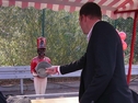 Eimerwerfen im Marktstand / Spielstand. Wer trifft mit einer Holzkugel den Blecheimer, ohne dass die Kugel wieder aus dem Eimer springt?