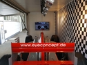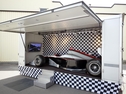 Die Anlieferung und der Betrieb des F1-Simulators erfolgt auf einem wettersicheren Podium-Bühnentrailer. Der F1 Bühnentrailer bietet Ihnen eine komplette Showbühne mit optimalem Wetterschutz, durch ein 2m tiefes aufklappbares Vordach. Der Formel 1 Simulator ist auf dem Bühnentrailer, incl. Großbildschirm, Bühnenlichttraverse, Tontechnik, und einer Renndekowand als Hintergrund, fest montiert und angeschlossen. Über eine Aufgangstreppe erreichen interessierte Fahrteilnehmer das Podium. Schneller Aufbau: Klappe auf, Stecker rein und los! Diese Bühne ist ein weithin sichtbarer Eyecatcher für Ihr Event!