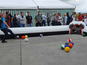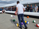 Die Spieler bewegen sich abwechselnd in einem überdimensionalen Billardfeld. Der Fuß des Spielers dient dabei als "menschliches Queue". Es wird nach Billardregeln mit Fußball-Billardkugeln gespielt. Bedruckte Fußbälle der Größe 5 als überdimensionale Billardkugeln. Incl. XXL-Billard-Dreieck.