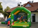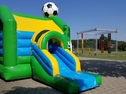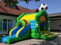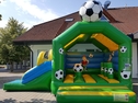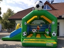 Fußball Hüpfburg Multifun mieten. Fußballspaß für die kleinen Gäste - Riesenhüpfburg im Kickerdesign, mit Rutsche, verschiedenen Fußballelementen und Regenschutzdach. Ein Riesenspaß für alle kleinen Fußballfans. Die Fußballatttraktion zur WM 2018 das Superhighlight für Kids bei nationalen und internationalen Fußball-Events, Champions League, DFB Pokal, Bundesliga, Fanfesten, Sommerfesten und im Stadion.