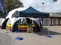 Die Aktionsfläche/Stellfläche muß gerade, tragfähig, trocken und sauber sein. Falls Ihre Aktionsfläche nicht wettersicher ist, können Sie gegen geringen Aufpreis gern ein Regenschutzzelt (Spiderzelt) bei uns dazubuchen.