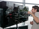 3 LED-Anzeigen für schnellste Runde, Kontakte und die persönliche Rundenzeit. Schneller Auf- und Abbau mit höhenverstellbarem Stativ und Transportbox. Frontaufbau auf leicht transportabler eleganter Standbox im Hochglanzdesign zum Stativaufbau, auch integrierbar in vorhandene Messewand.