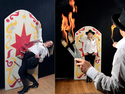 Unsere ungewöhnliche Darbietung ist bereits in zahlreichen Fernsehshows und Filmen zu sehen gewesen. Genießen Sie den Nervenkitzel. Ob mit Wurfmessern, Küchenmessern, Nägeln, Scheren, Äxten, Feilen, Wurfsternen, brennenden Messern etc. - wir schrecken vor keiner Herausforderung zurück. Jede Verkleidung und auch die ausgefallensten Szenen sind machbar z.B. als Koch mit Küchenmesser und fliehender Bedienung, als Indiana Jones, Zorro, Pirat... den Möglichkeiten sind keine Grenzen gesetzt.