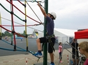 Mobiler Klettergarten für Kinder. Balancieren, klettern, hangeln und wackelige Übergänge meistern. Im Kinder-Hochseilgarten sind Spannung, Nervenkitzel und viel Spaß angesagt. Kinder ab ca. 100 - 160 cm Körpergröße können diesen mobilen Kinder Hochseilgarten erleben. Der Parcour ist mit 8 verschiedenen Stationen bunt und kinderfreundlich ausgestattet. Eltern, als begeisterte Zuschauer verfolgen die Aktion, können auch gern mitlaufen, wenn gewünscht, Hilfestellung leisten und natürlich den kleinen Kletterern gute Tipps geben. Das TÜV-geprüfte, umlaufende Sicherungssystem und eine professionelle Ausrüstung mit Sicherungsgurten und Helmen machen die Aktion zu einem absolut sicheren Vergnügen!