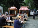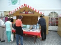 Individuell und universell einsetzbar. Ganz nach Ihren Vorstellungen und Wünschen! Marktbude mit festen Holzwänden und Eingangstür. Präsentationstheke: 2,00m x 0,60m