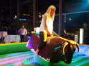 Der Ritt auf dem stählernen Ochsen ist Highlight beim Oktoberfest. Ausdauer und Geschicklichkeit sind gefragt. Das Gerät ist geeignet für Groß und Klein bis 120kg Körpergewicht. Verschiedene Geschwindigkeiten und Schwierigkeitsgrade sorgen für spannende Wettbewerbe.