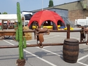 Ranch Portal Eingangsportal, optional mit Aufschrift nach Wunsch. Koppelzaun (Bis zu 50 lfd. m), indoor und outdoor geeignet. Western Kulissenelemente zur Komplettierung Ihrer Westernstadt für Wild West Events, Film- und TV-Produktionen.