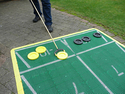 Sie können beim Fun Shuffleboard selbst die Schwierigkeit der Herausforderung bestimmen. Spielen Sie z.B. um den HighScore. Hier zählen alle Felder, in die der Spieler eine seiner Disc einbringt. Bleibt die Disc aber auf einer der Linie liegen, wird sie nicht gewertet. Bleibt die Disc in einem Minus-Feld liegen (z.B. -10), wird dieser Wert vom Punktekonto des Spielers abgezogen. Schnelles Spiel, hier haben viele Spieler in kürzester Zeit Gelegenheit zur Teilnahme. Spannend wird das Spiel im Battle, wenn 2 Spieler direkt gegeneinander antreten. Hier können Discs vom Gegner attakiert werden um die eigene Disc besser zu platzieren.