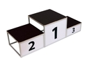Hochwertiges Siegerpodest mieten oder kaufen, mit ineinander stapelbaren Plätzen. Platzsparend, edel, robust, wetterfest.