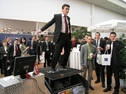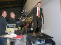 Wer möchte nicht einmal durch die Lüfte schweben wie Olympiasieger Andreas Wellinger oder skifliegen wie Richard Freitag. Mit diesem Skisprungsimulator ist das ab sofort möglich, ohne sich in schwindlige Höhen begeben zu müssen. Auf einem interaktiv bewegten Schanzentisch wird der Sprung und der Fahrtwind aus verschiedenen Richtungen auf der virtuellen Großschanze simuliert. Hier werden Balance und schnelle Reaktion gefordert. Bei einer optimalen Anlaufgeschwindigkeit von 89 km/h ist eine maximale Sprungweite von 140m durchaus möglich. Die Landung erfolgt konventionell oder mit dem Telemark. Eine interaktive Computeranimation aus der Sicht des Springers macht die Illusion perfekt. Sie hören dazu den interaktiven Live-Sportkommentar von RTL-Sprecher Gregor König. Jeder Teilnehmer absolviert einen Trainingssprung, danach einen Wertungssprung. Auf Wunsch gibt unser Operator die Teilnehmernamen vor jedem Wertungssprung ein. Der Name des Springer erscheint dann während des Sprungs am oberen Bildrand. Nach der Landung wird die aktualisierte "Top-10" eingeblendet und die Platzierung des Springers erscheint - bei Topleistung in der Top 10 - bzw. ab Platz 11 blinkend unter der Rankingtabelle. Springer und Publikum verfolgen das Geschehen auf einem der neuesten Großbildschirme, weithin sichtbar in einer Höhe bis zu ca. 2,40m. Incl. Tontechnik, ausreichend für Messestände.Schneller Durchlauf, nur ca. 1 Minute je Teilnehmer.