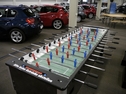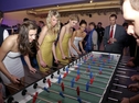 Hier kommt der neue Riesen Tischkicker für Abteilungen, Teamevents, Malls, Messen, u.v.m. 8 Personen können gleichzeitig in 2 Mannschaften am Kicker spielen. Das Gerät ist seht standsicher durch das hohe Eigengewicht, ca. 103kg.