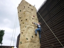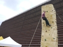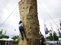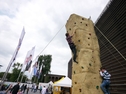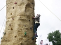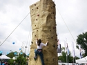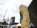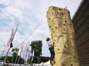 Mobiles Klettermassiv aus GFK mit ca. 6,20m Höhe und 1m Überhang (Der Überhang beginnt bei ca. 4m Höhe). 13m² Kletterfläche und verschiedenen Routen, 4 Seiten bekletterbar. Free-Climbing mit Betreuung durch 1-2 erfahrene Bergsportler. Im Kletterberg befindet sich ein Beschwerungstank 1,4 x 1,4 x 1,4m, der vor Ort mit Wasser befüllt wird. Ein Wasseranschluß am Aufstellort (max. 30m Entfernung) muß vom Auftraggeber gestellt werden. Aufbauzeit ca. 2 Stunden. 2 weitere Eventhelfer sind vom Auftraggeber zu stellen.