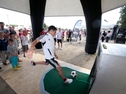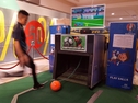 Schnelles Spiel mit virtuellem Torwart, Schiedsrichter, Scorewertung und Timeout. Der weltweit erste, real bespielbare, virtuelle Fußballsimulator mit Kunstrasenanlauf, Großbildschirm und regelbarem Stadion-Soundpackage. Wählen Sie aus 3 Optionen die "Qualifikation des virtuellen Torwarts". Der Wettbewerb kann beginnen. Anpfiff...die Uhr läuft... Sie haben je 20 Sekunden Zeit je Torschuß und zunächst 6 Bälle. Dabei stehen Sie dem virtuellen Torwart in verschiedenen Spielsituationen gegenüber. Die Position des Balls zum Tor ändert sich dabei im Bild vor jedem Schuß. Der virtuelle Torwart wird versuchen möglichst viele Bälle zu halten! Besonders gut platzierte Treffer werden mit Bonusbällen und weiteren Punkten belohnt. Erzielen Sie die meisten Treffer, die höchste Schußgeschwindigkeit, den höchsten Score! Zur Sicherheit ist der Ball an einer Schnur mit dem Simulator fest verbunden, So gibt es keine umherfliegenden Bälle. Ideal ist diese beliebte Retro Sportsgame für Tagungsrahmenprogramme, Messe- und Promotionstände.