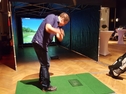 Video-Golfsimulation mit Sensorabschlagmatte, Eventsimulatorensoftware, Golf-Drivingrangeprogramm,  Hochleistungsrechner und hochwertiges Schlägerset. Spielen mit bis zu vier Spielern auf virtuellen Golfplätzen weltweit. Putten Sie selbst oder wählen Sie Auto Putt. Unglaublich realistisch. Die Distanz und die Richtung eines Schlags werden in Echtzeit ermittelt.  2 x 16 optische Hochleistungssensoren messen jeden Schwung, Pitch, Chipp oder Putt.