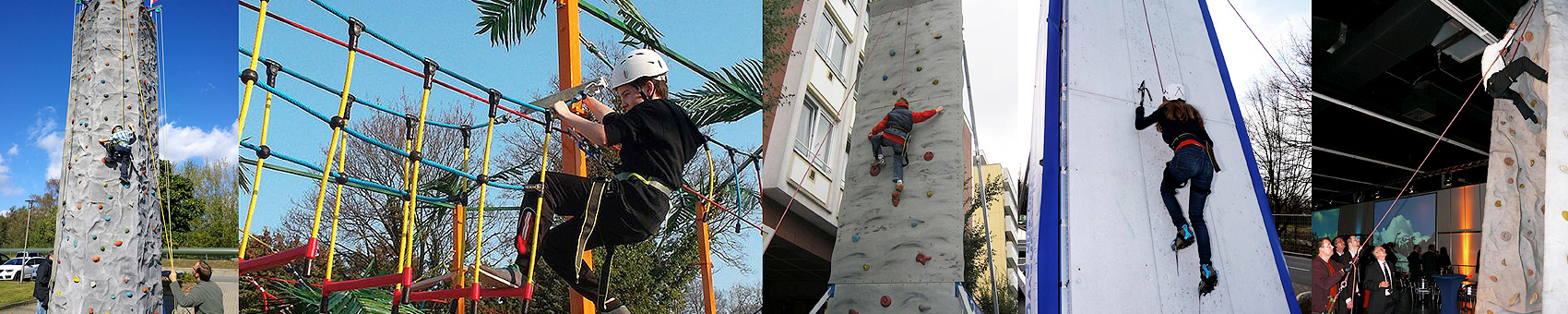 Klettern wie die Profis, mit mobilen Kletterwänden und Kletterbergen von EYECONCEPT GmbH in Mannheim - Heidelberg - Frankfurt - Stuttgart - Köln - Berlin- Hannover - Hamburg - Dortmund - München - Leipzig. Mieten oder kaufen: Kletterberg Montana mit 6 Kletterrouten - Höhe: 5,50m, Alpen-Nordwand Kletterwand Kletterfelsen (8m), Icetower, Höhe ca. 10m, Klettermassiv Kletterberg, 3-seitig bekletterbar (Höhe: 10m), Mobiler Klettergarten für Kinder, Mobiler Hochseilgarten Klettergarten mieten, Synchronkletterwand, The Rock Kletterfelsen (4 Seiten bekletterbar)